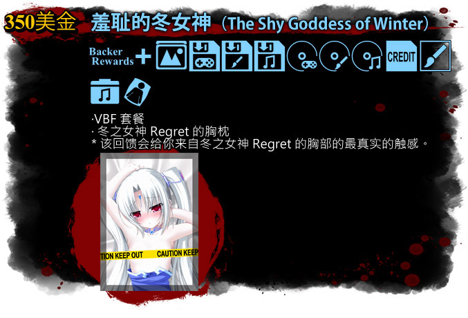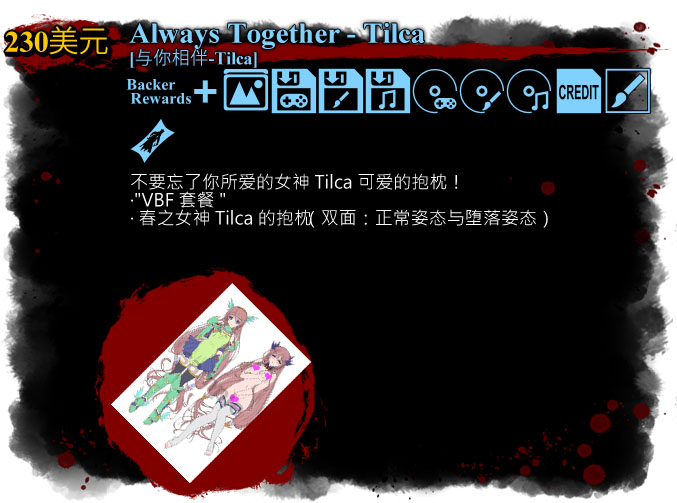 同时我们也希望玩过VenusBlood FRONTIER的各位中文玩家能够支持本次Kickstarter上的VBF英化版众筹项目,如果本次的VenusBlood FRONTIER的英化版的众筹不成功的话,我们也无法继续接下来的中文化项目,与此同时,我们希望在未来某一天会以中文版的姿态与大家见面!