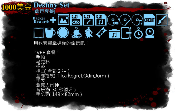 如果你选择的回馈套餐内的VBF套餐以及回馈内容产生重复的话,我们将逐一赠与你回馈内容物,而重复的内容物将换成对等的金额,参与到"Yggdrasil的秘史"的众筹当中。