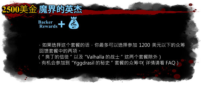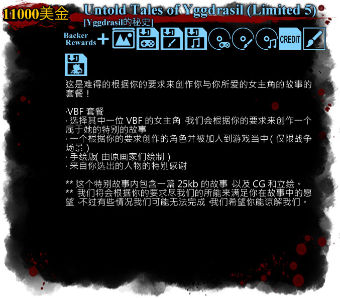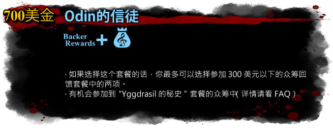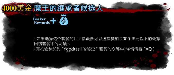 *如果你参加了这四个回馈套餐,请告诉我们你需要其中哪俩个低于该4个套餐内额度的套餐,并且当你想要参与到"Yggdrasil的秘史"套餐的众筹的金额与我们约定的套餐中参与到众筹中的金额不同的话,请你告诉我们。当你确定要参与到"Yggdrasil的秘史"众筹中的金额后,我们就会把该金额用于"Yggdrasil的秘史"套餐的众筹当中。